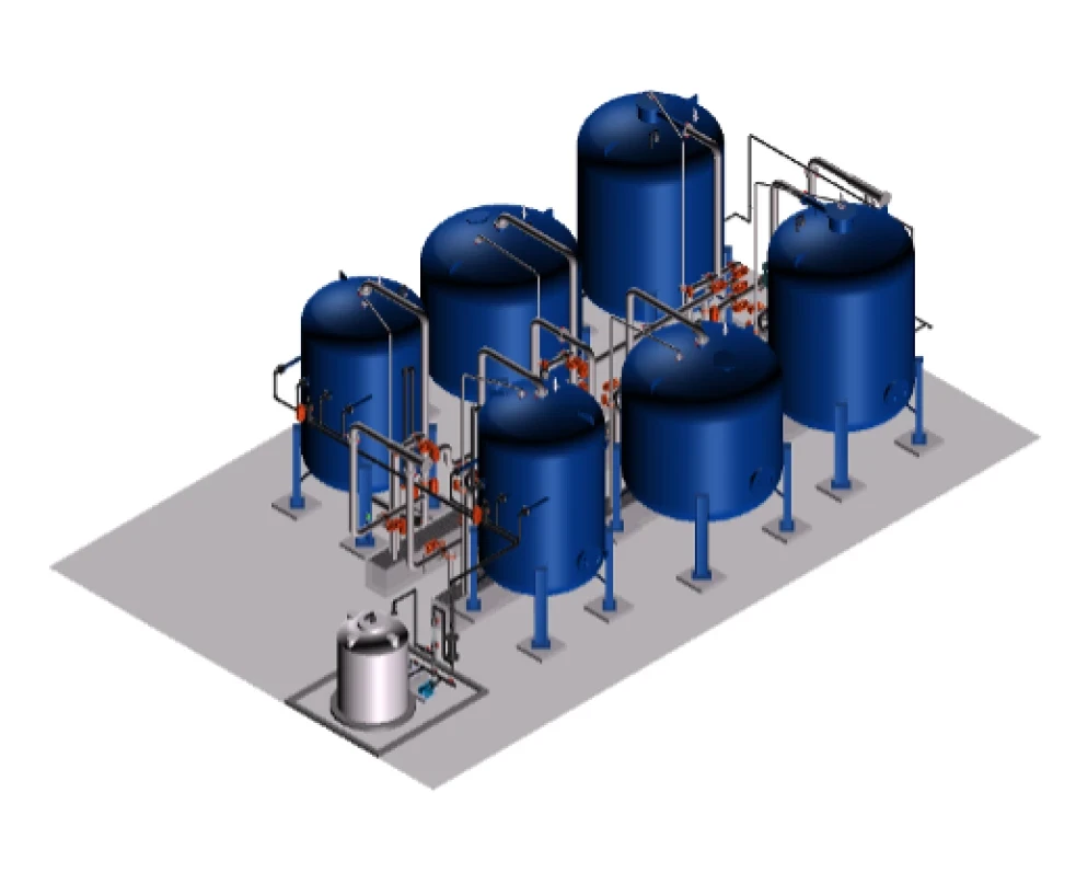 Esto asegura que el agua pase uniformemente a través del lecho de carbón activado y sea recogida en el fondo por una serie de distribuidores instalados en la parte inferior del filtro.