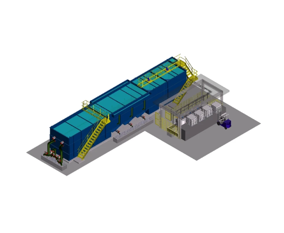 La Estación de Tratamiento de Agua Compacta (ETAa) Tipo ABIERTO fabricada por YETE en construcción metálica ofrece una solución eficiente y versátil para el tratamiento de agua. Al igual que ETAp, ETAa también requiere sólo cimentaciones simples para su instalación, eliminando la necesidad de obras civiles importantes como las que se requieren para las instalaciones de hormigón convencionales.